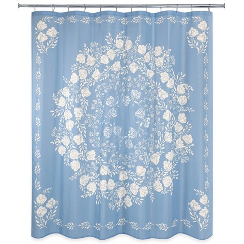 Nicole Miller Fabric Shower Curtain Aqua Blue Floral Medallion