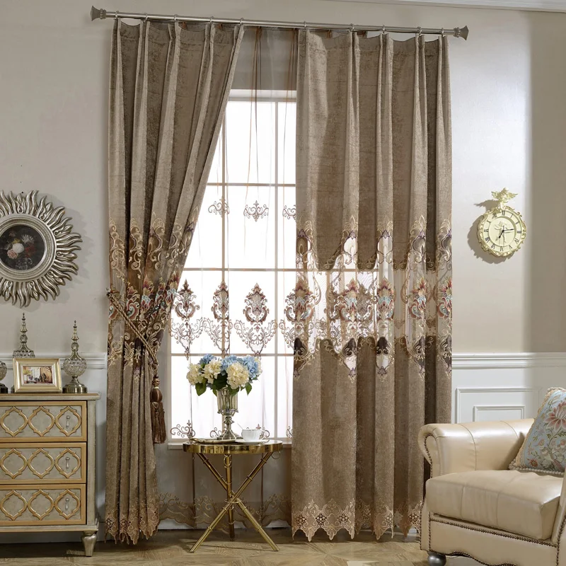 Luxury Brown Lace Curtains For Living Room Modern Embroidered