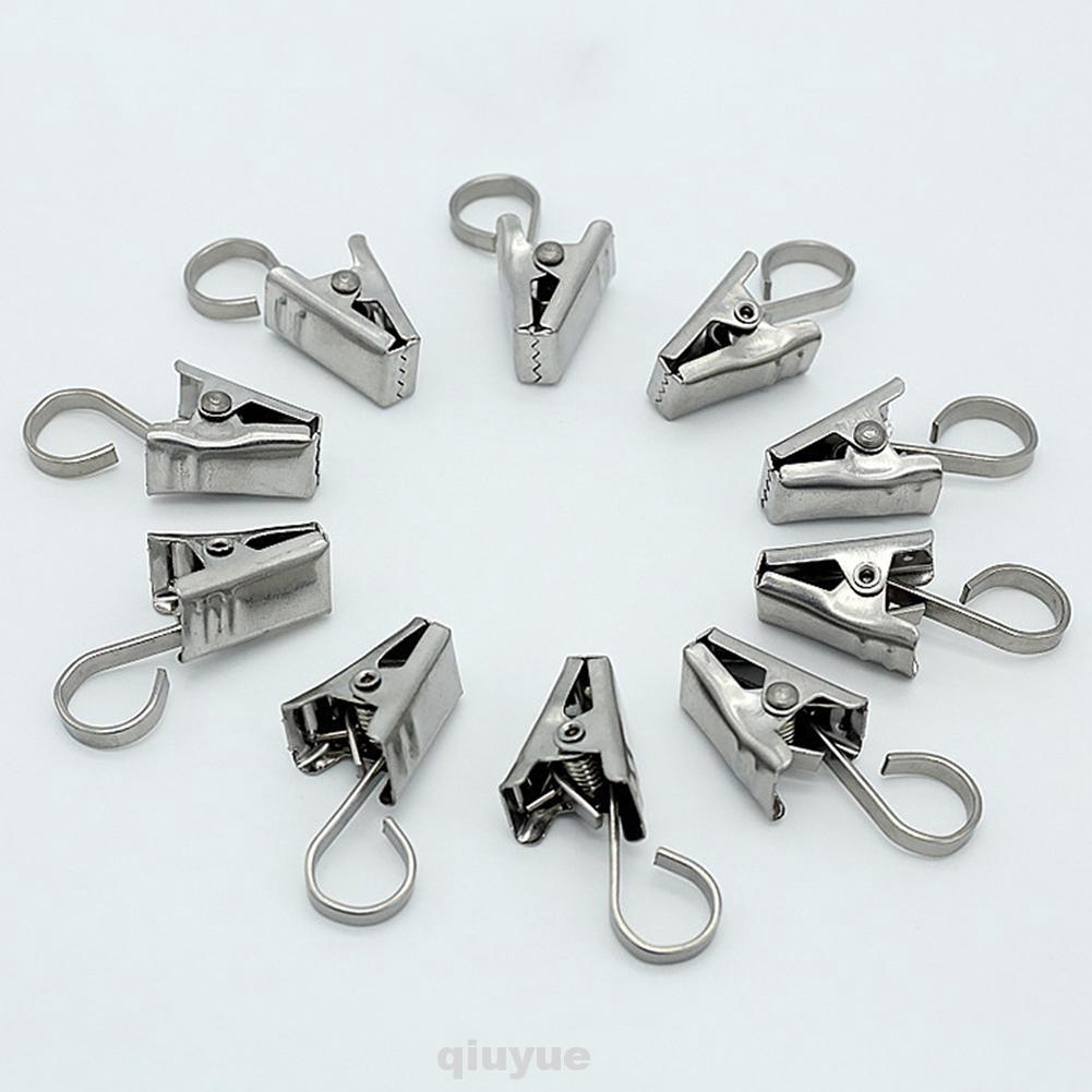 10 X Stainless Window Shower Curtain Rod Clips Metal Hook Drapery