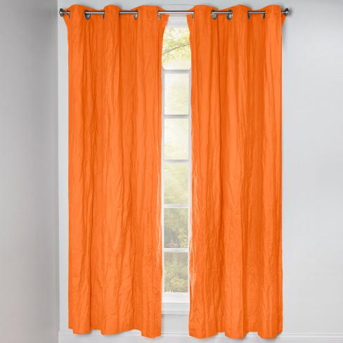 Orange Crushed Satin Window Curtain Panel With 8 Grommets