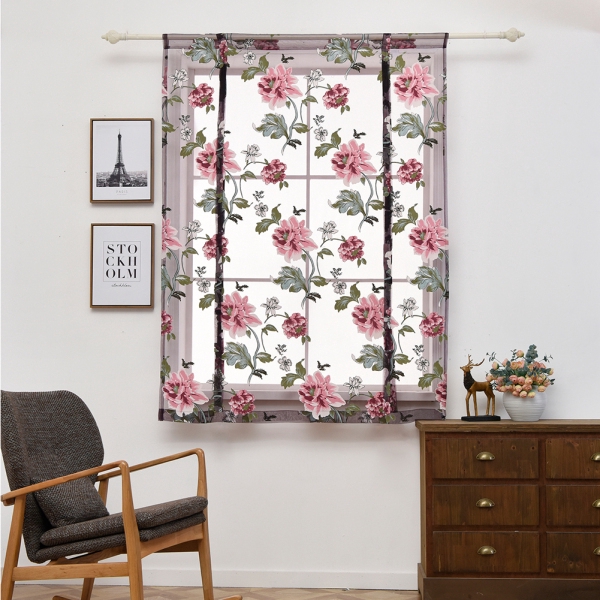 Peony Pattern Short Sheer Curtains Roman Blinds Tulle Curtains For