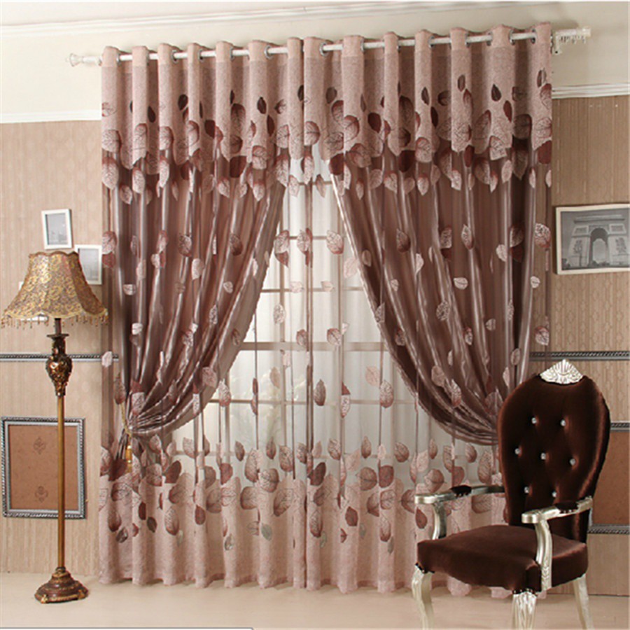 Floral Vines Leaves Sheer Curtains Tulle Door Window Curtain Drape