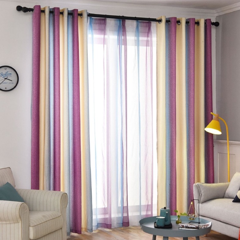 Jrd Rainbow Striped Blackout Curtains For Living Room Short Door